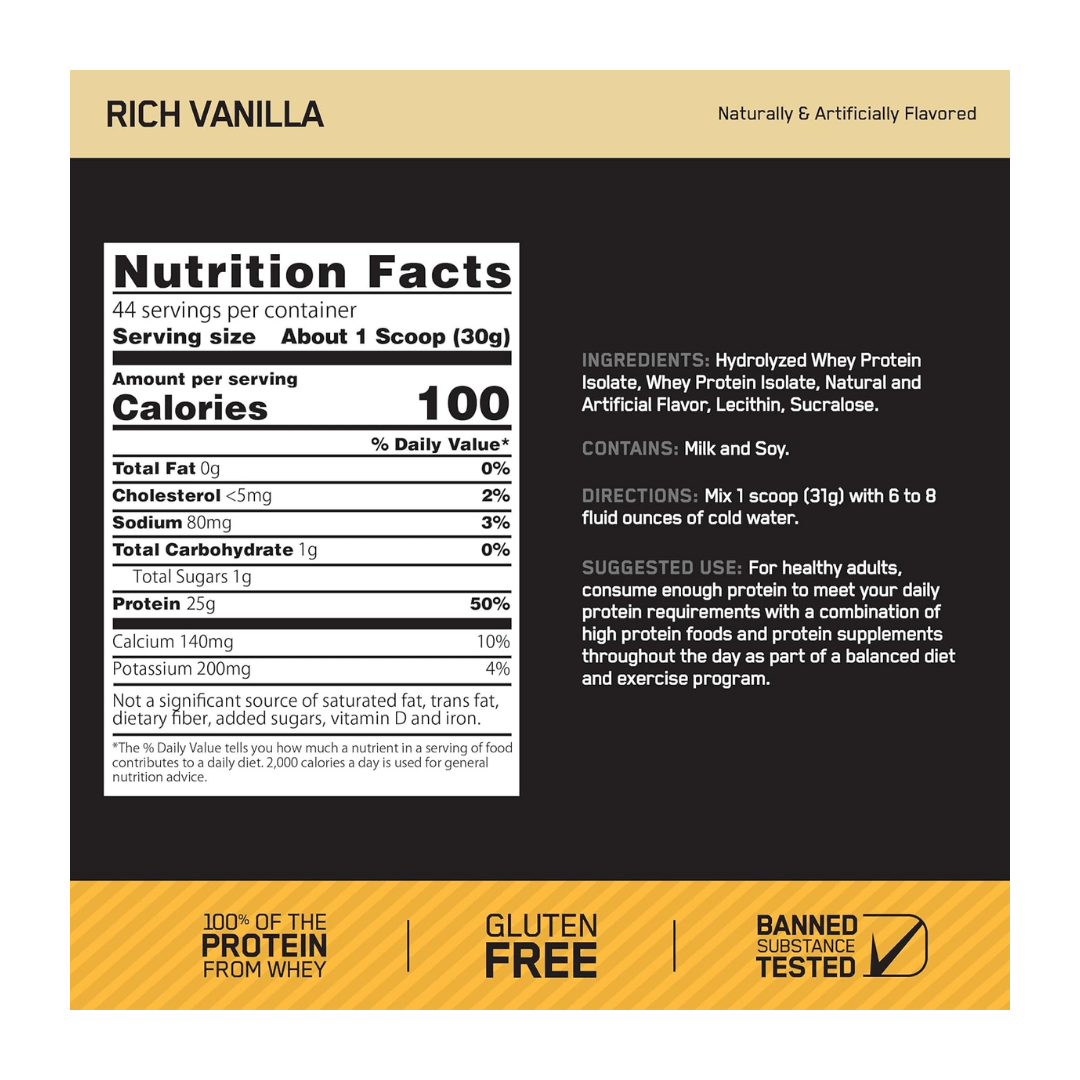 Gold Standard 100% Isolate 3lb – Optimun Nutrition – Vainilla